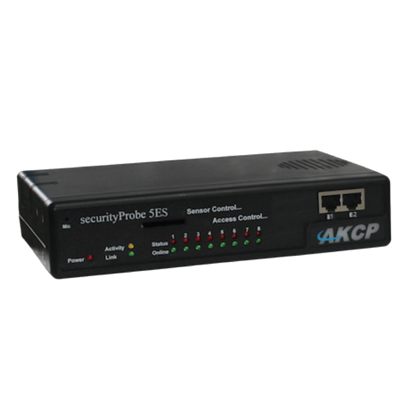 Up to 8 of AKCP’s Intelligent Sensors can be connected to the securityProbe 5E Standard. When plugged in, the sensor automatically configures itself and goes online. Using the either the E-sensor 8, or the E-opto 16 expansion modules, up to 500 sensors can be connected to a single unit. Our easy-to-use web based interface allows you to setup the securityProbe 5E Standard within minutes. When online, the sensors use their 4 levels of threshold checking and report any status change.